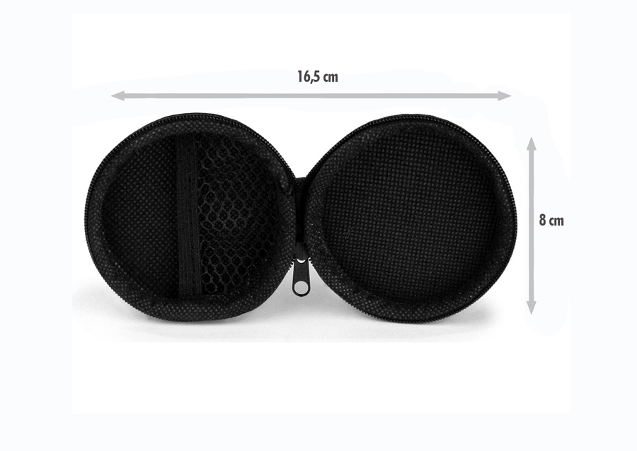 Poręczne etui na małe przedmioty takie jak słuchawki douszne, karty pamięci, pendrive zatyczki do uszu. Wykonane z wytrzymałego tworzyła tak aby zamortyzować wszelkie uderzenia i zapobiec uszkodzeniu przedmiotów znajdujących się w środku. Etui praktyczne, niewielkich rozmiarów wyposażone w zamek oraz karabińczyk tak aby można było przypiąć do ubrania lub inne przedmiotu. Pokrowiec wyposażony w środku w siatkową kieszonkę która również zapewnia dodatkowe miejsce do przechowywania przedmiotów o niewielkich rozmiarach.