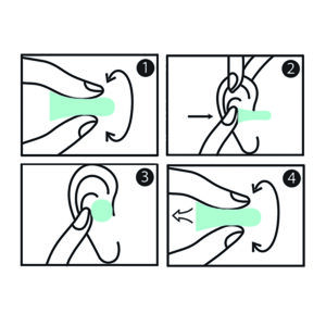 Przede wszystkim upewnij się, że zatyczki są czyste. Następnie wolną ręką sięgnij nad głową i lekko pociągnij ucho do góry dzięki czemu ułatwi to włożenie. Drugą ręką chwyć za zatyczkę i powoli włóż do ucha. Pamiętaj aby zatyczek nie wkładać zbyt głęboko do środka, może to skutkować podrażnieniem kanału słuchowego. Zawsze bezpiecznie i powoli wkładaj oraz wyciągaj zatyczki.